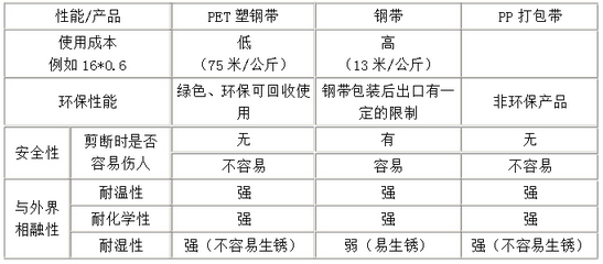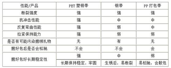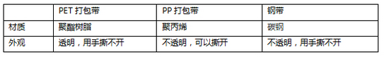從名稱可以看出三種打包帶原料決定了他們的區別。